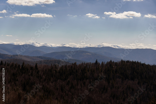 mountain, landscape, nature, sky, cloud, forest, scenery, winter, summit, daylight, calmness, view, panoramic, snowy, peak, adventure, exploration, serene, wild, environment, hiking, solitude, beautiful, breathtaking, evergreen, picturesque, range, horizon, sunlight, wilderness, elevation, travel, vista, remote, clear, highland, foliage, open, height, scenic, distant, fresh, majesty, blue, snow, season, sunny, atmosphere