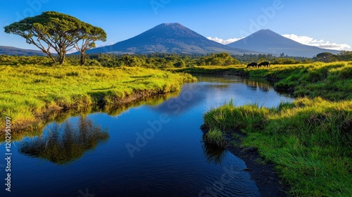 Tranquil mountain landscape with river