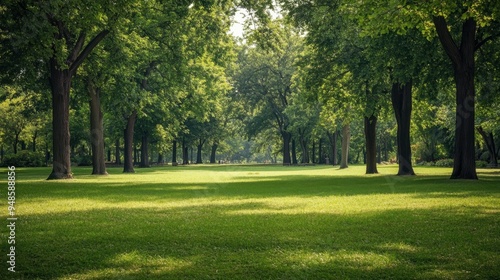 Tranquil park scene with trees and open space, providing a natural backdrop with room for text or graphics
