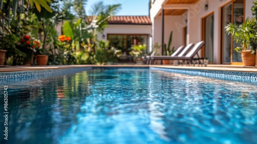 pool, water, sunlight, relaxation, lounge, chair, garden, greenery, tropical, retreat, vacation, summer, leisure, tranquil, serene, blue, nature, plant, flower, resort, home, picturesque, idylli, cosy, inviting, architecture, landscape, sunny, luxury, hospitality, ambience, peaceful, recreation, oasis, clear, sky, afternoon, view, escape, design, corner
