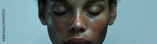 Tranquil Portrait of an Adult, Serenity and Maturity Radiate in this Close-Up Image, Displaying Peaceful Eyes and a Gentle Expression, Reflecting Inner Calm and Wisdom, Captivating the Viewer with