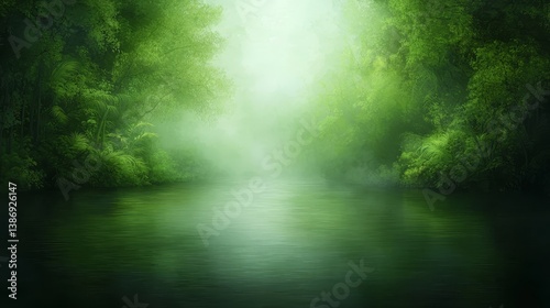 Tranquil river flowing through dense forest captivating nature scene serene