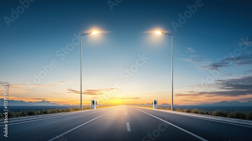 Tranquil Road Under Sunset with Street Lights