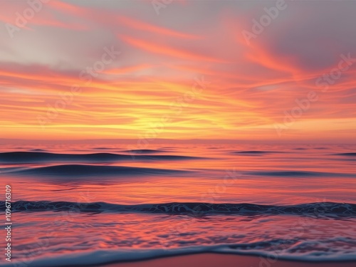 Tranquil seascape with gentle waves and colorful sunset, beauty, seascape