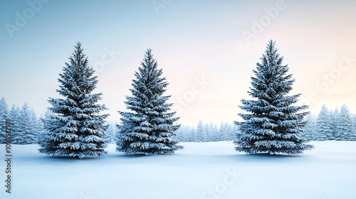 Tranquil Snowy Landscape with Symmetrical Pine Trees and Pastel Winter Sky