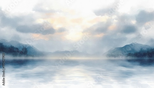 Tranquil Watercolor Landscape with Gentle Clouds and Soft Pastel Colors for Calm Atmosphere