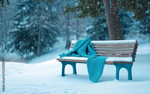 park, nature, bench, winter, tree, wooden, quiet, silence, knit up, still, tranquil, snowfall, cold weather, cosy, blue, snow, blanket, landscape, peaceful, calm, empty, winter scene, cold