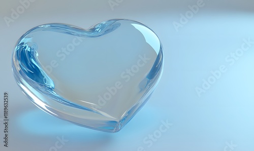 Translucent blue glass heart on light blue background.