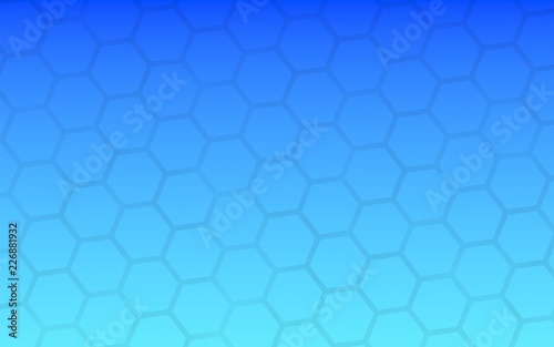 Translucent honeycomb on a gradient blue sky background. Perspective view on polygon look like honeycomb. Isometric geometry. 3D illustration
