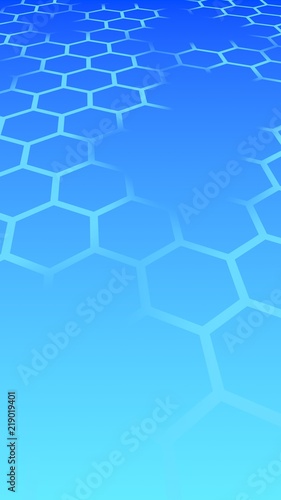 Translucent honeycomb on a gradient blue sky background. Perspective view on polygon look like honeycomb. Isometric geometry. Vertical image orientation. 3D illustration