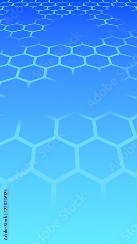 Translucent honeycomb on a gradient blue sky background. Perspective view on polygon look like honeycomb. Isometric geometry. Vertical image orientation. 3D illustration