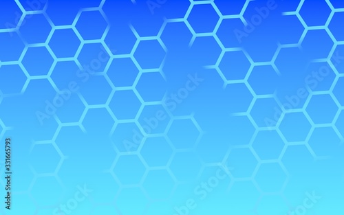 Translucent, with breaks, honeycomb on a gradient blue sky background. Perspective view on polygon look like honeycomb. Isometric geometry. 3D illustration