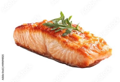 [Transparent Background PNG]Delicious Pan-Fried Salmon with Garnish