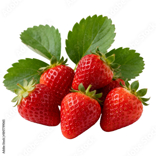 [Transparent Background PNG]Fresh Red Strawberries with Green Leaves