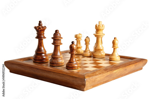 [Transparent Background PNG]Wooden Chess Set on a Tray