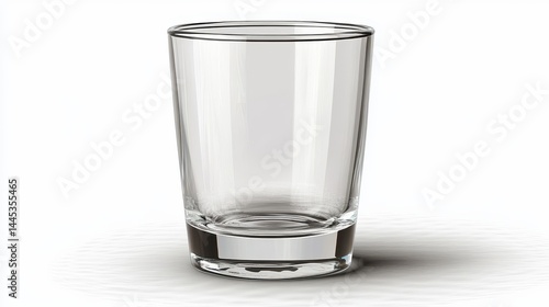 Transparent drinking glass on white surface: minimalist design and reflections