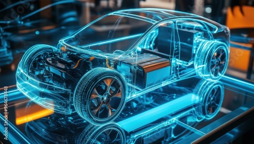 car, electric, vehicle, automobile, engine, technology, future, innovation, design, model, transparent, wireframe, three-dimensional, rendering, digital, futuristic, concept, modern, eco, sustainable, energy, battery, wheel, chassis, interior, exterior, blue, light, glasses, steel, abstract, minimalism, clean, powerful, style, speed, motion, line