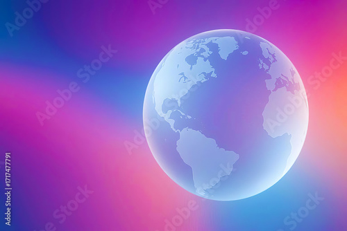 Transparent frosted glass Earth globe glossy abstract background with copy space