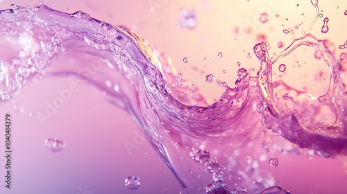 Transparent gel splash with abstract bubbles and droplets forming a smooth fluid composition
