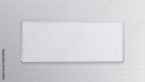 Transparent glass rectangle with rounded corners on a dotted background. Abstract blank mock-up for presentation or display.