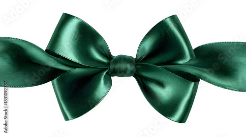 Transparent green satin ribbon and bow with realistic shadow isolated on white background