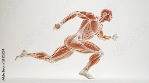 Transparent overlay of muscles on a running human, showing movement dynamics.