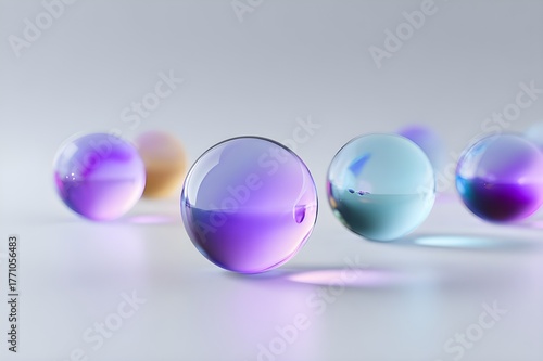 Transparent Plastic Spheres with Internal Color Gradients for Modern Design and Abstract Geometric 3D Art Composition