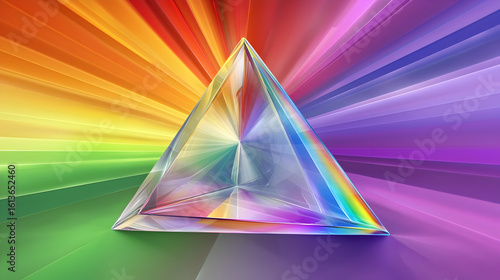 prism, rainbow, light, colourful, transparent, geometric, crystal, iridescent, spectrum, pyramid, refraction, optical, glasses, energy, colours, design, modern, abstract, art, illumination, bright, shiny, faceted, sharp, angled, clear, geometry, shape, pattern, high-coloured, hue, saturation, pastel, gradient, many-coloured, graphic, digital, illustration, three-dimensional, light rays, visual