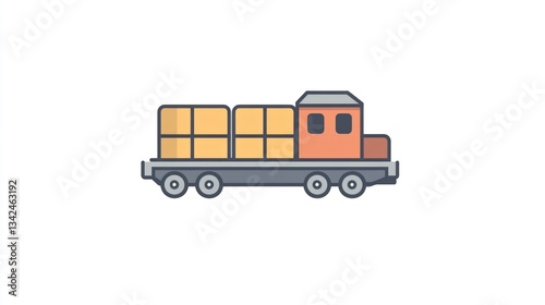 Transportation Icon Featuring a Cargo Train with Containers and Caboose