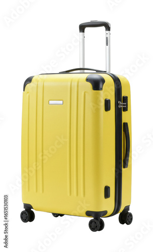 Travel action with yellow luggage airport location product indoor environment viewpoint isolated on transparent background