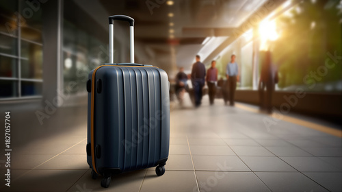 Travel suitcase in airport hall concept of business trip vacation journey and tourism mobility