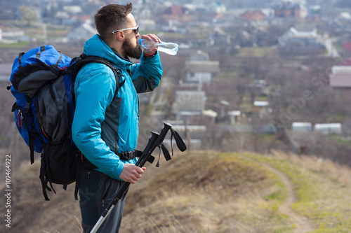 holiday maker, hiking, recreation, weekend, relax, water, clean, travel, hike, bottle, pause, stop, man, jacket, sunglasses, backpack, activity, adult, cliff, concept, drink, europa, landscape, leisure, lifestyle, looking, mountain, nature, hill, rest, scenic, trip, vacation, view, wide, direction, bag, clothes, expedition, horizon, heavy, holiday, journey, sky, countryside, village, background, horizontal