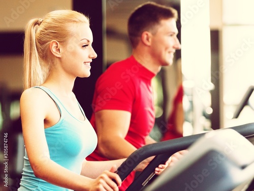 treadmill, active, adult, beautiful, body, cardio, care, caucasian, class, club, concept, couple, electric, exercise, female, fit, fitness, girl, gym, health, healthy, indoor, jogging, lifestyle, machine, male, man, modern, muscle, people, relax