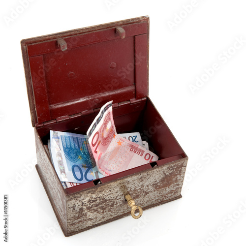 old, rust-eaten, treasure chest, metal, key, open, money, euro, currency, europa, strongbox, coffer, saving, spending, business, recession, isolated
