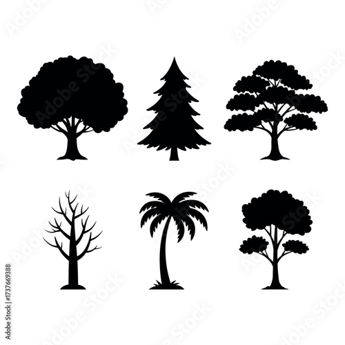tree, forest, nature, plant, leaf, ecology, environment, green, icon, set, growth, isolated, wood, tree branch, park, garden, summer, natural, landscape, design, graphic, illustration, flat, vector, silhouette, symbol, root, foliage, organic, season, climate, flora, jungle, wilderness, camping, wild, eco, countryside, timberland, scenery, leafage, plantation, botany, arbour, vegetation, reusing, conservation