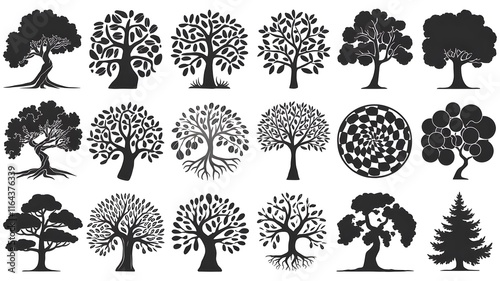 Tree Icons in Black and White