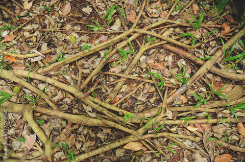 Tree roots sprawling around.