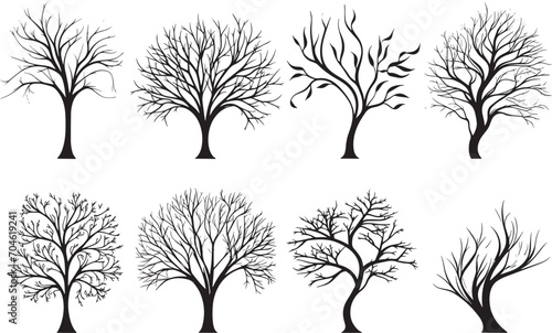 tree, silhouette, tree branch, nature, vector, leaf, forest, black, plant, illustration, design, art, winter, spring, trunk, tree, season, autumn, oak, bare, wood, outline, set, floral, symbol
