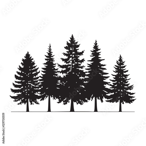 forest, silhouette, tree, nature, graphic, plant, illustration, vector, design, black, background, white, wood, natural, environment, set, landscape, tree branch, garden, outline, icon, element, summer, drawing, art, symbol, leaf, park, pine, fir, spruce, shape, collection, coniferous, trunk, abstract, season, foliage, decoration, tropical, stem, winter, growth, travel, oak, vintage, green, botany