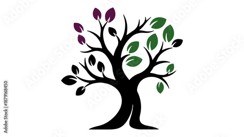 tree, silhouette, leaf, coloured, illustration, stylised, black, white, background, nature, art, design, graphic, symbol, icon, environment, growth, change, life