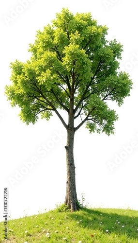 Tree standing tall against a bright white backdrop , bold, isolated, contrast
