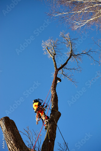 logger, environment, proper, equipment, tree, work, pruning, nature, protection, sawing, high, tree branch, forestry, harness, climber, saw, timbering, forester, industry, gardening, tool, climbing, safety, chain saw