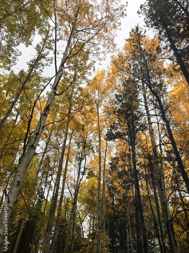 tree, nature, landscape, autumn, top, orange, canopy, fall, gold, beautiful, forest, natural, yellow, leaf, scenic, sky, outside, blue, foliage, colourful, light, leaf, background, scenery, season, seasonal, tree branch, trunk, wood, view, up, sunny, treetop, perspective, looking, abstract, growth, up high, aerial, poplar, aspen, canada, alberta