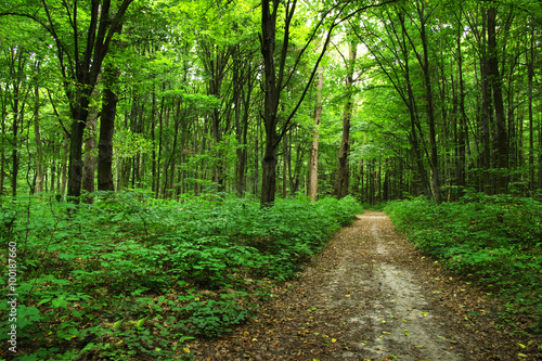 green, forest, wood, tree, foliage, perspective, spring, leaf, bright, sunny, scenery, walk, beauty, branch, scenic, plant, wild, nature, environment, landscape