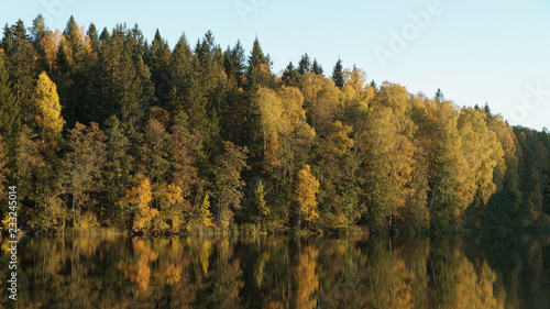autumn, lake, water, forest, landscape, nature, fall, tree, river, sky, tree, blue, duck pond, yellow, gold, cloud, view, park, season, morning, fog, leaf, leaf, green