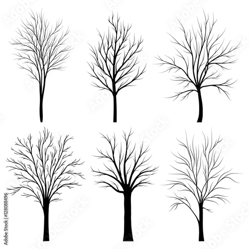 tree, silhouette, vector, tree, black, white, illustration, nature, isolated, tree branch, forest, background, design, plant, season, wood, trunk, set, outline, drawing, silhouette, art, shape, autumn, winter, environment, collection, natural