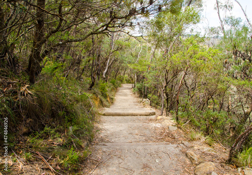 Trekking trail in the rainforest at Wentworth Falls, New South Wales, Australia.