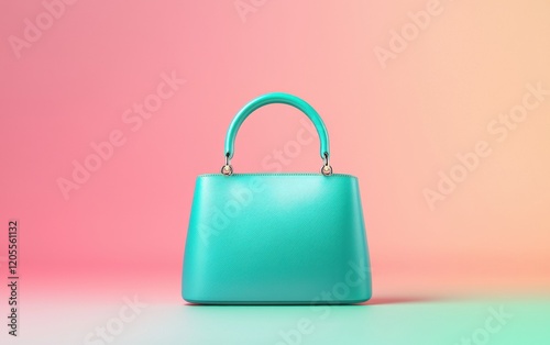 Trendy mini bag in vibrant teal displayed on a warm pastel gradient background