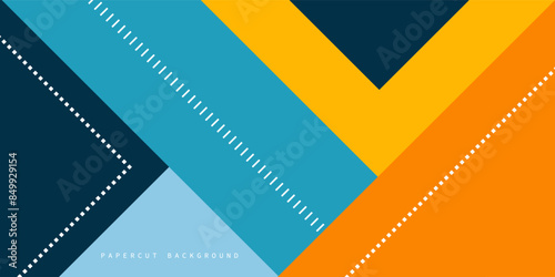 Trendy orange and blue abstract 3d background with square shape and lines. Colorful illustration with overlap pattern on background. Smart design for your promotions. Eps10 vector