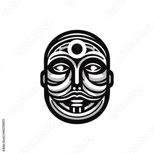 Tribal masks representing night, crescent moon and stars are integrated